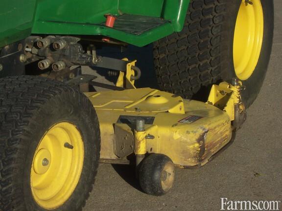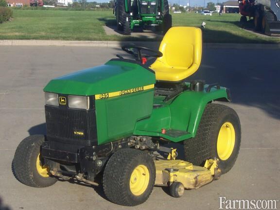 John Deere 445 Lawn and Garden Tractor for sale...2000 Model...1414 hours...includes 54" mower...runs good, sounds good, looks good...good hood, good side sheets, normal cracks in seat, good grille, one taillight is loose as usual, mower deck is quiet, good deck engagement clutch, good hydraulic lift, good power steering, no hydraulic squeel noise, tires good and matching, no leaks, good dashboard...overall good outfit...previous owner attests to his good maintenence schedule...we kinda believed him, based on how it runs...to be sold as-is, in good running condition.