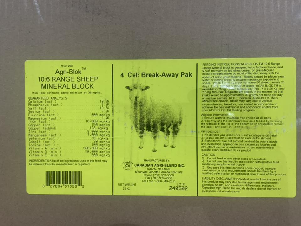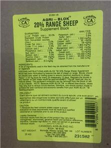 Sheep: 50kg and 25kg 20% Protein and 10:6 Mineral also 16:16 Loose Mineral