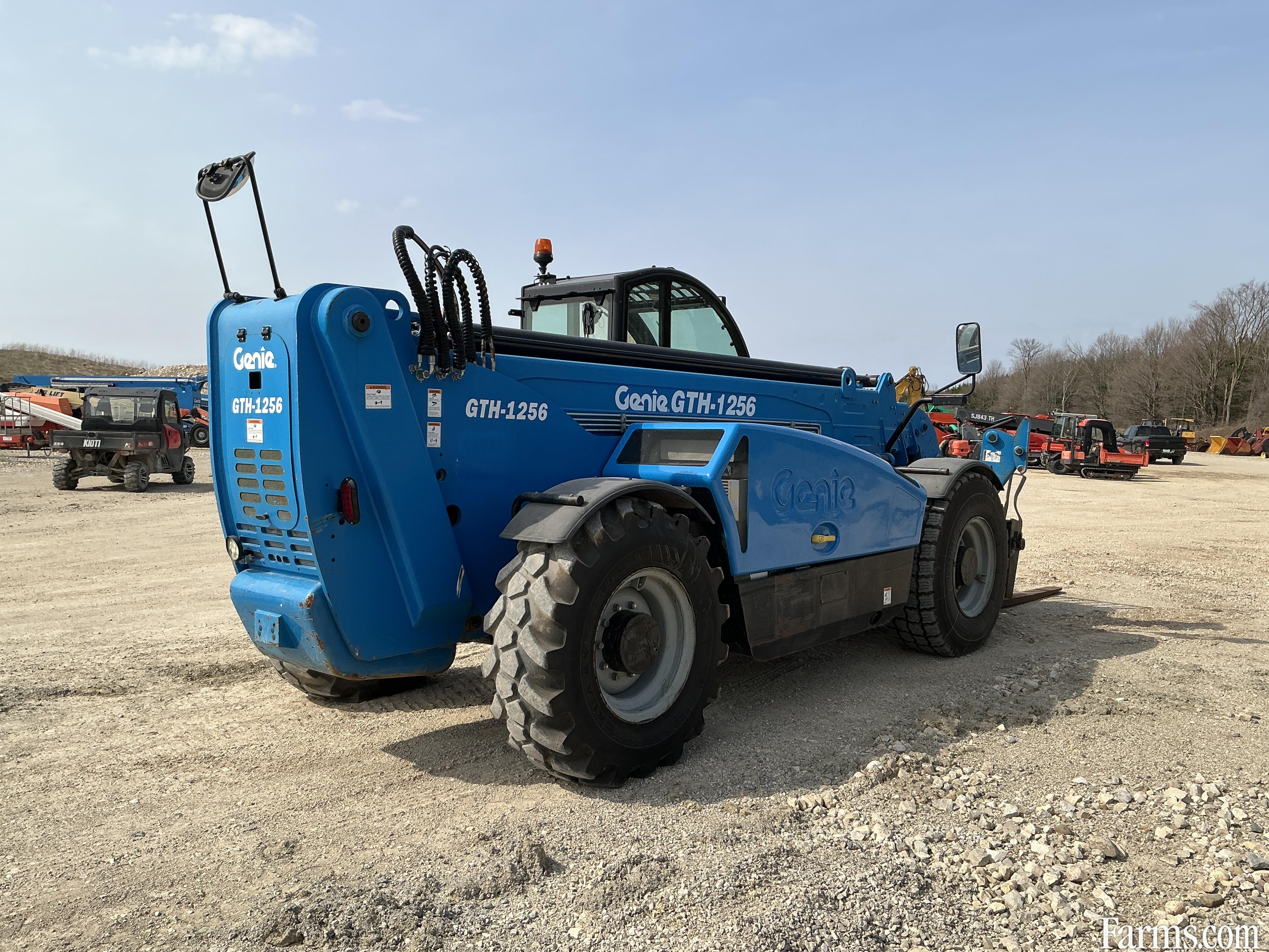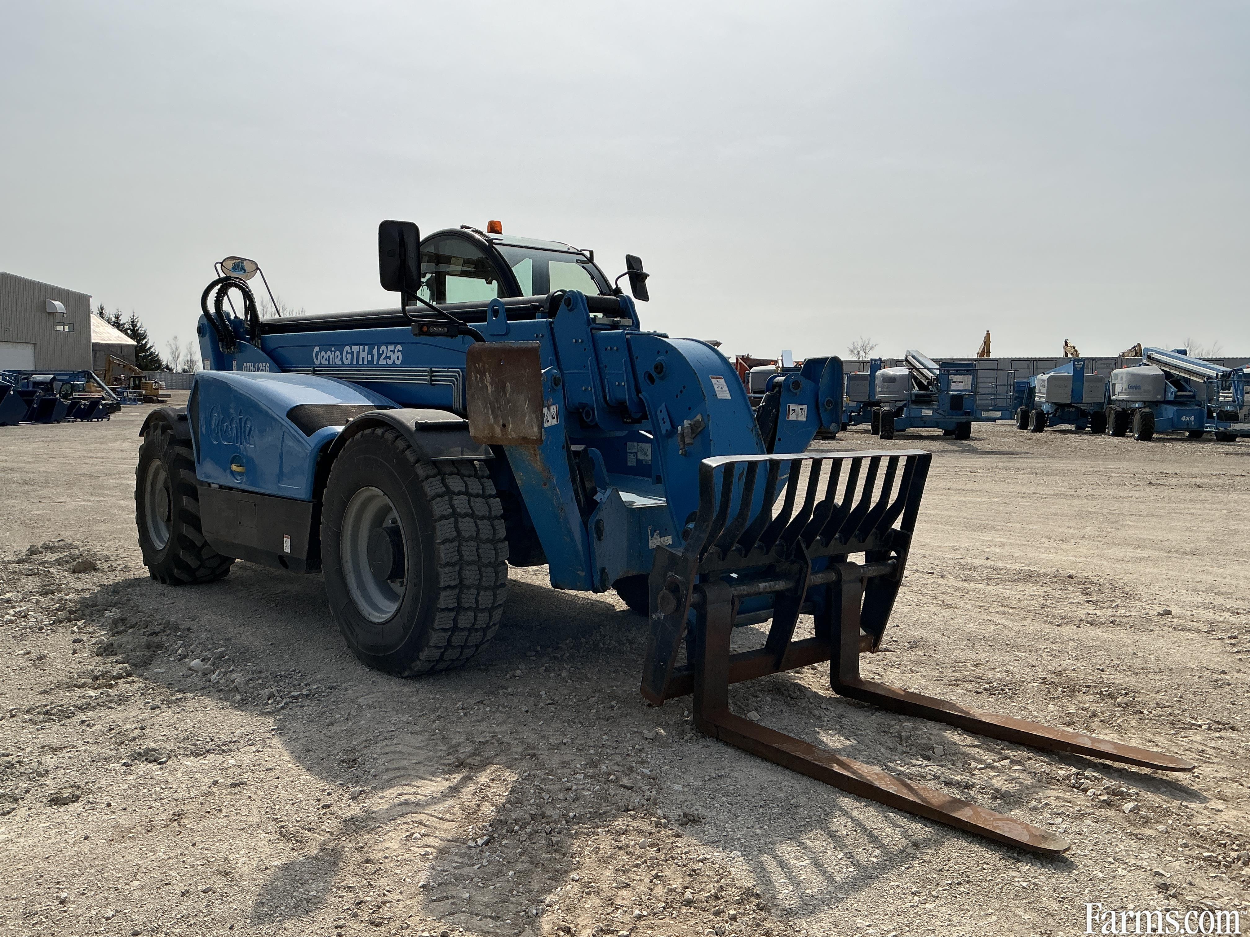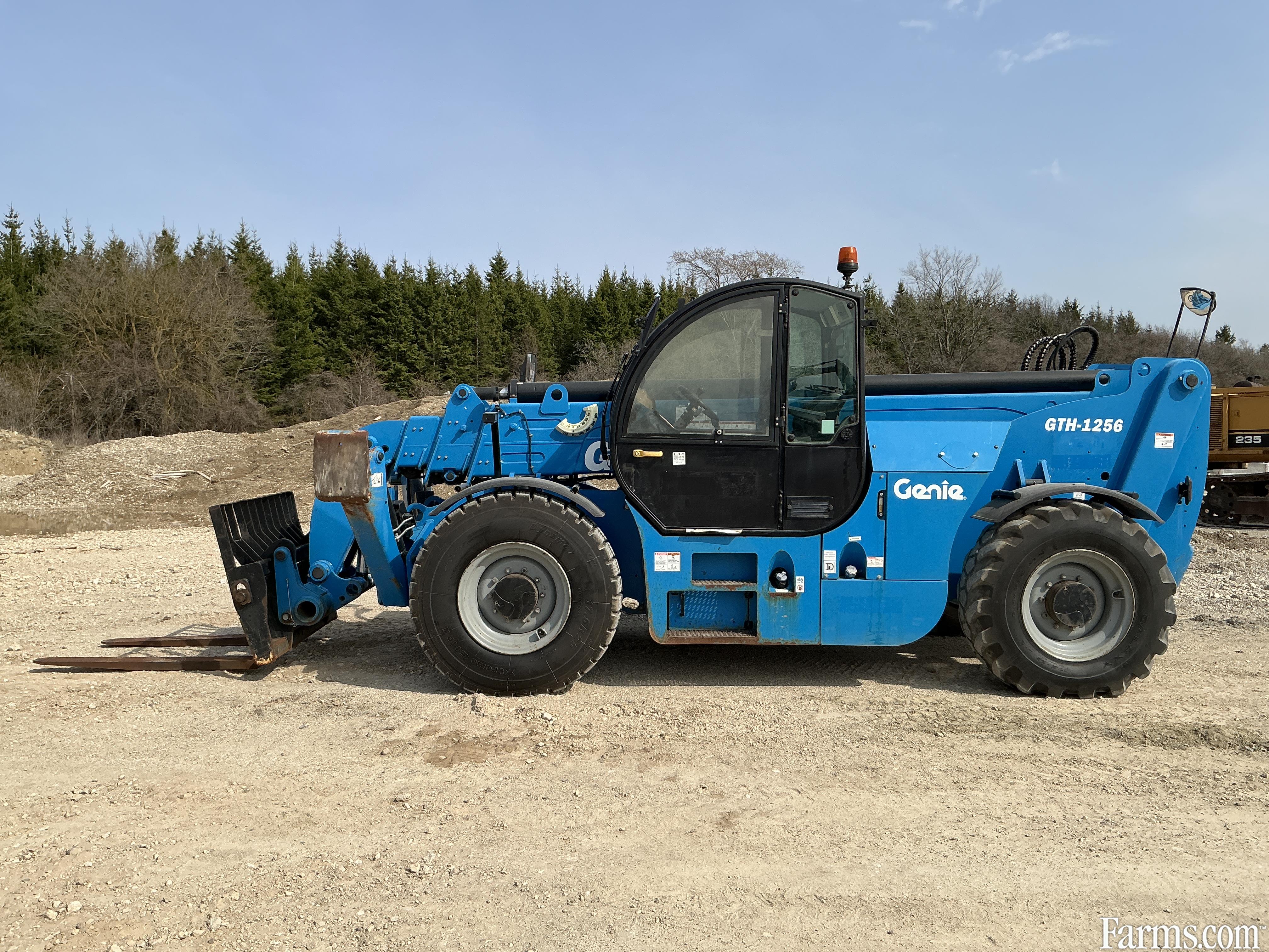 2018 genie GTH1256 telehandler powered by a diesel engine. Enclosed heated cab and all glass intact. Front quick connect. 12000lb lift capacity and max reach of 56ft. hour meter reads 3282. Located in Maxwell Ontario.