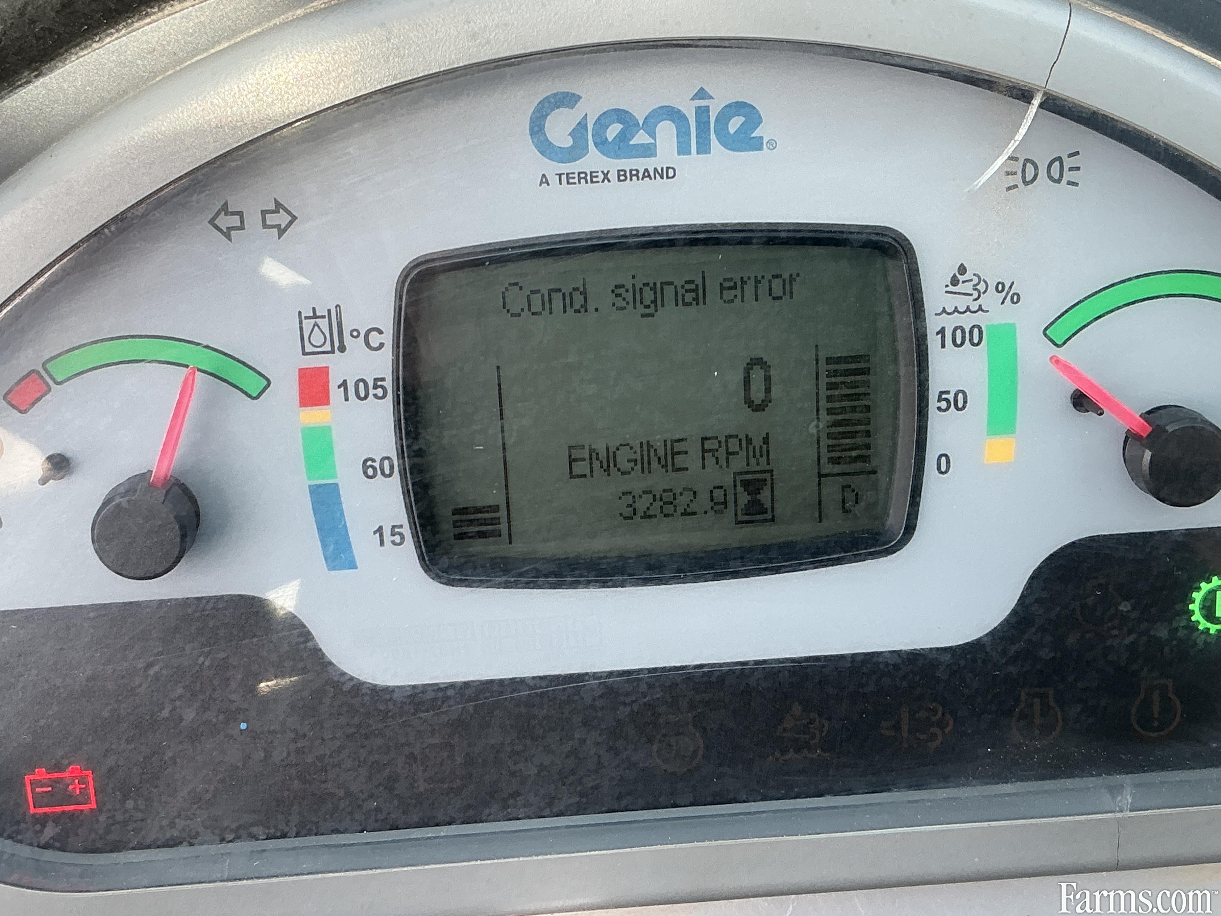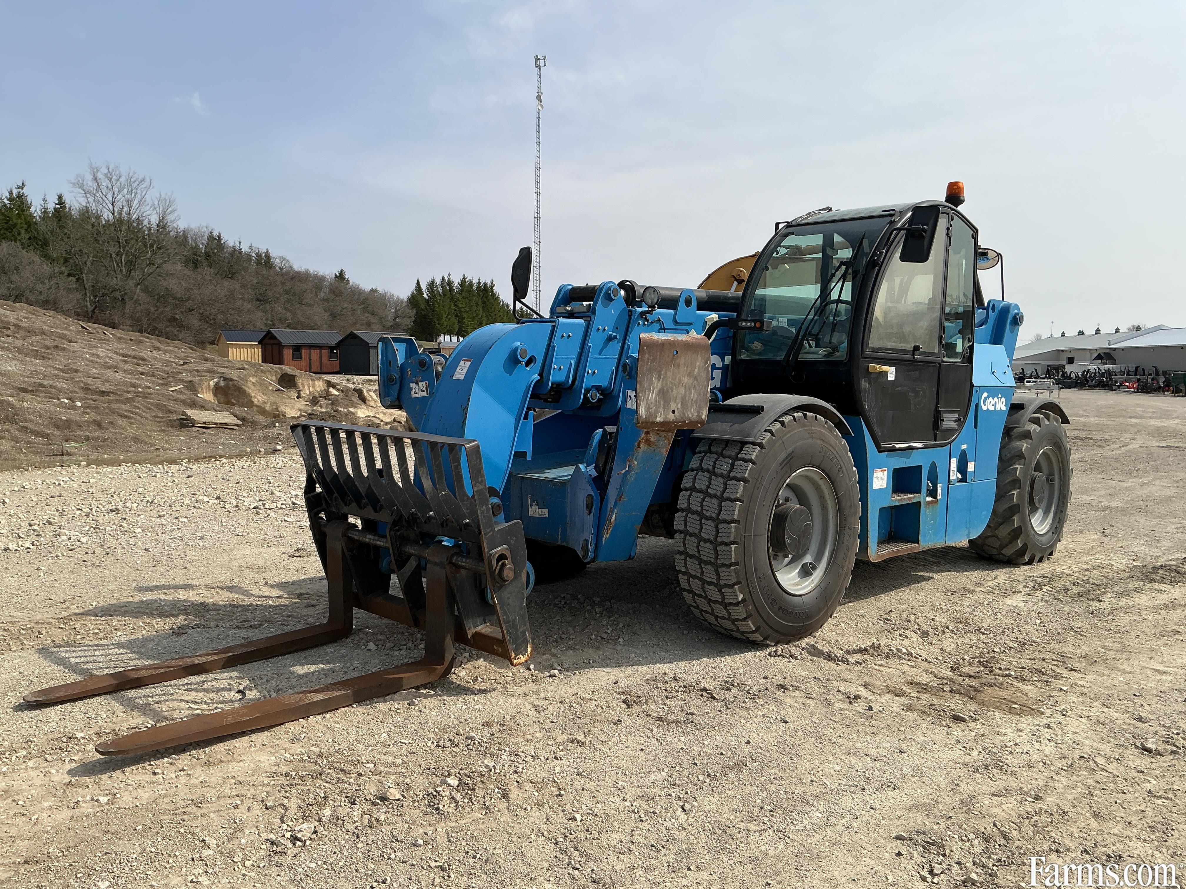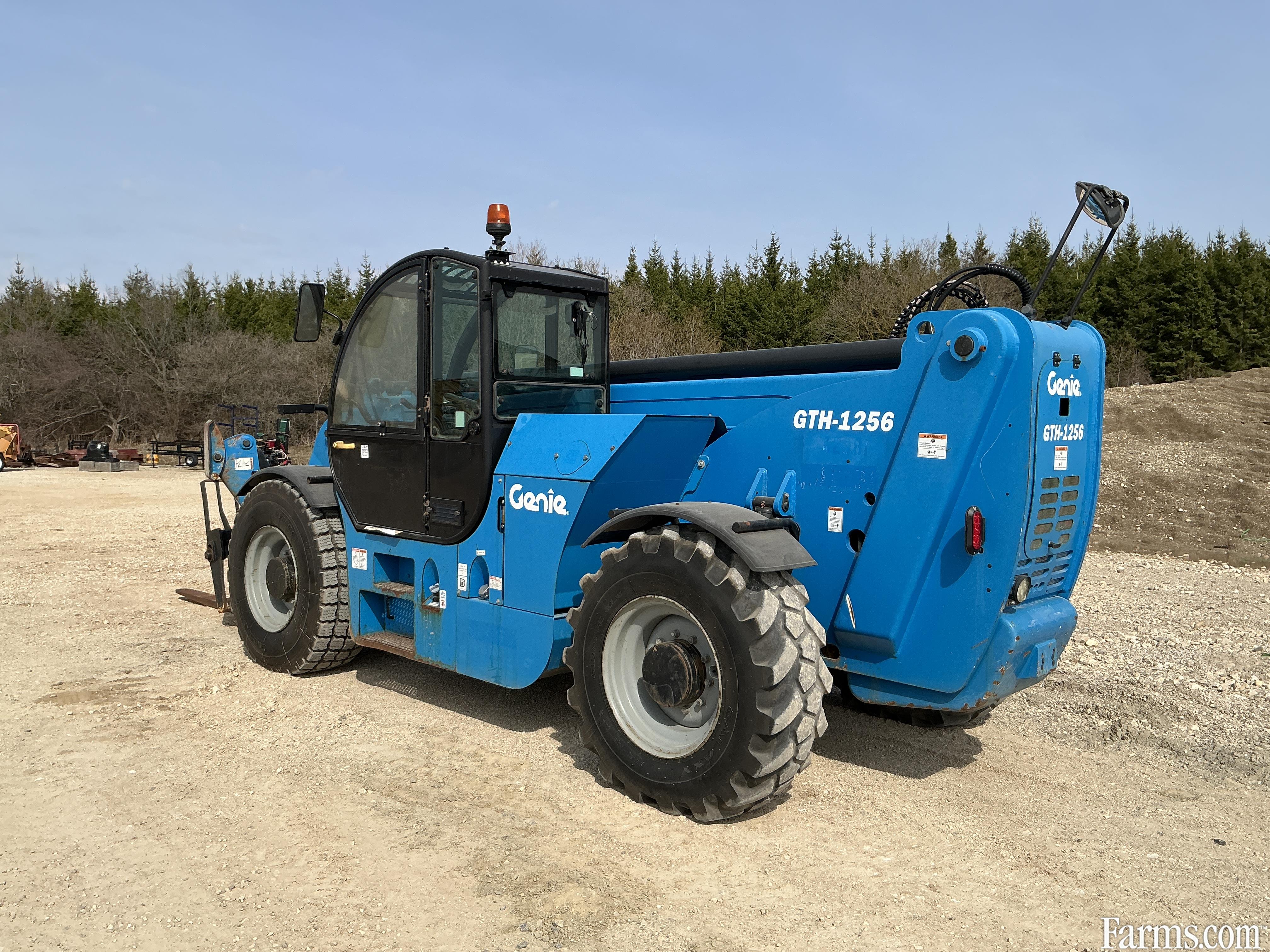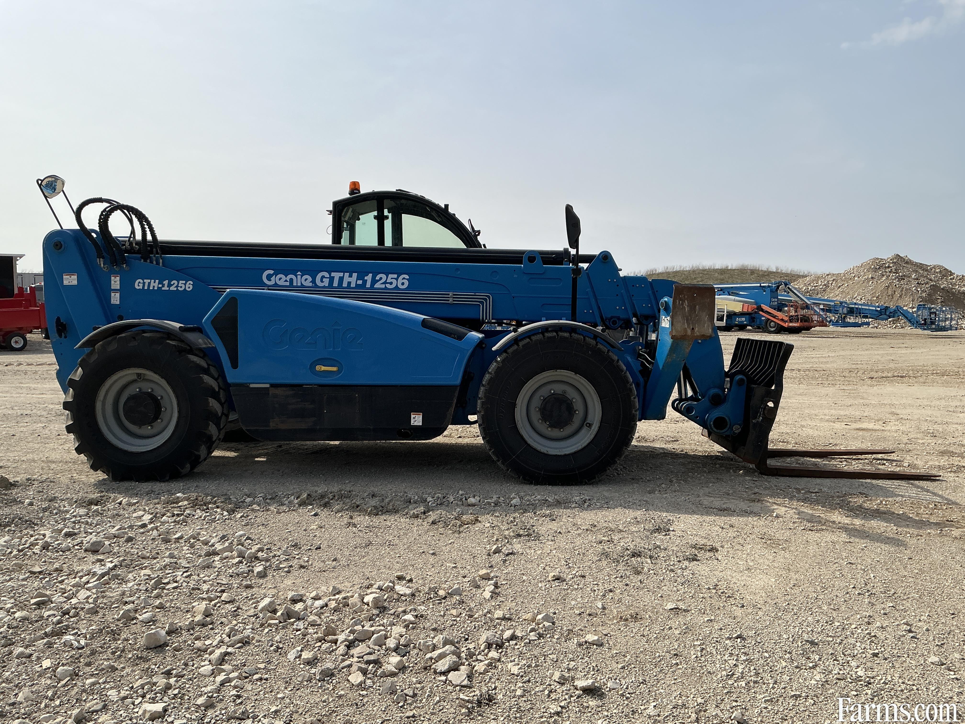 2018 genie GTH1256 telehandler powered by a diesel engine. Enclosed heated cab and all glass intact. Front quick connect. 12000lb lift capacity and max reach of 56ft. hour meter reads 3282. Located in Maxwell Ontario.
