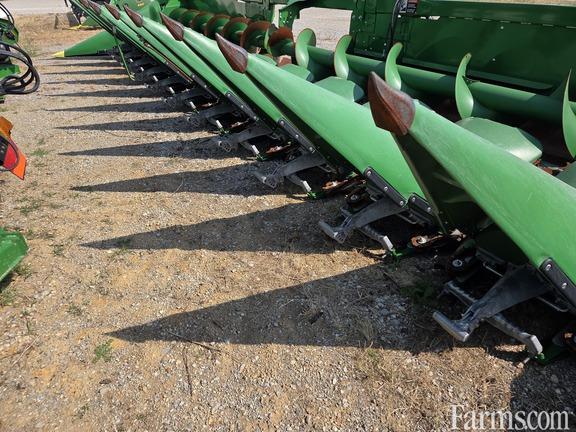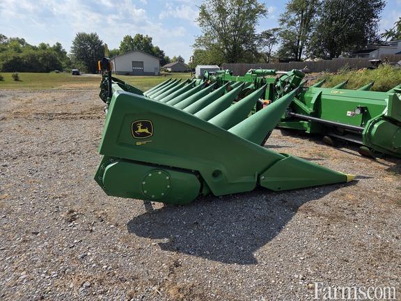 JOHN DEERE C12R CORN HEAD, 2024, 12 ROW, 30" row spacing, intermeshing knife rolls, hydraulic adjust hard surfaced deck plates, dual telescopic driveshafts, header height sensors, AutoTrac RowSense sensors, stalk deflector ready, compatible with S700 combines MY2018-2019, easy fold Perma-Glide deck covers & end fenders, stubble lights & road transport lights. Last used on JD S780.
