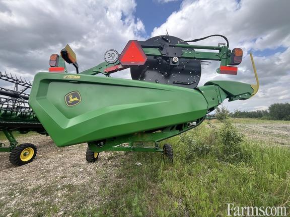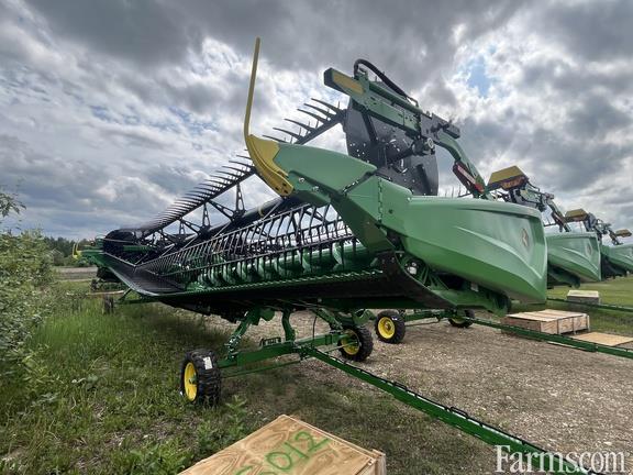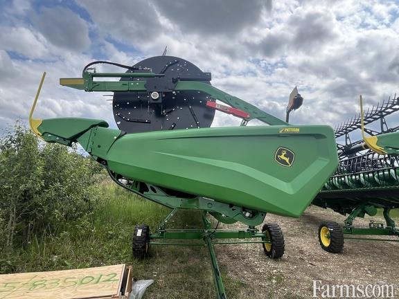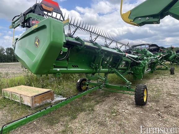 Options: Flip Over Reel, Platform Kind: Flex/Draper, Platform size: 45 Feet, Specifications: 45' Flex-Draper w/ Hinged Frame Rigid Cutterbar & Double Knife Drive; Split Reel w/ Fore/aft & Flip Over Kit; 18" Fingered Upper Cross Auger; Header Height Sensing; Wing Leveling; Poly Skid Shoes; Center Canvas Seal Kit; Spare Knife; Integrated Transport; High Wear Cutterbar Poly; Vertical End Knife; John Deere X Series Combine Adapter;