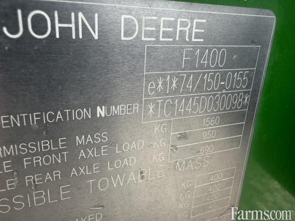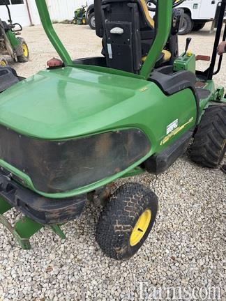 JOHN DEERE 1445/72 COMMERCIAL FRONT MOUNT MOWER, 2003, 2 WHEEL DRIVE with front drive axle differential lock, 31hp, Yanmar 3 cylinder, liquid cooled, diesel engine, 2 pedal foot controlled hydrostatic transmission, hydraulic deck lift, 4 post ROPS with hard poly roof, power steering, tilt steering wheel, deluxe suspension seat with armrests, wet disk individual turn assist brakes, rear counterweight, 23x10.50-12 bar tread drive tires, 18x8.50-8 steering tires. WITH: JD 72" REAR DISCHARGE FRONT MOUNTED MOWER DECK, 7 Iron Pro commercial deck, 1"-6" cutting height, 2 front caster wheels, 90 degree rotate for service.