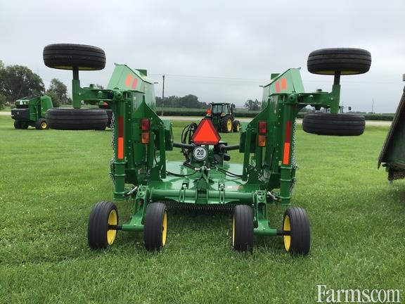 NEW Medium duty rotary cutter, 1000 RPM, Inward rotation, Blade pan, 8 pneumatic tires with double tires on center and wings, Swivel hitch, Suspended tongue, Extra wing cylinder hose, Spring suspension