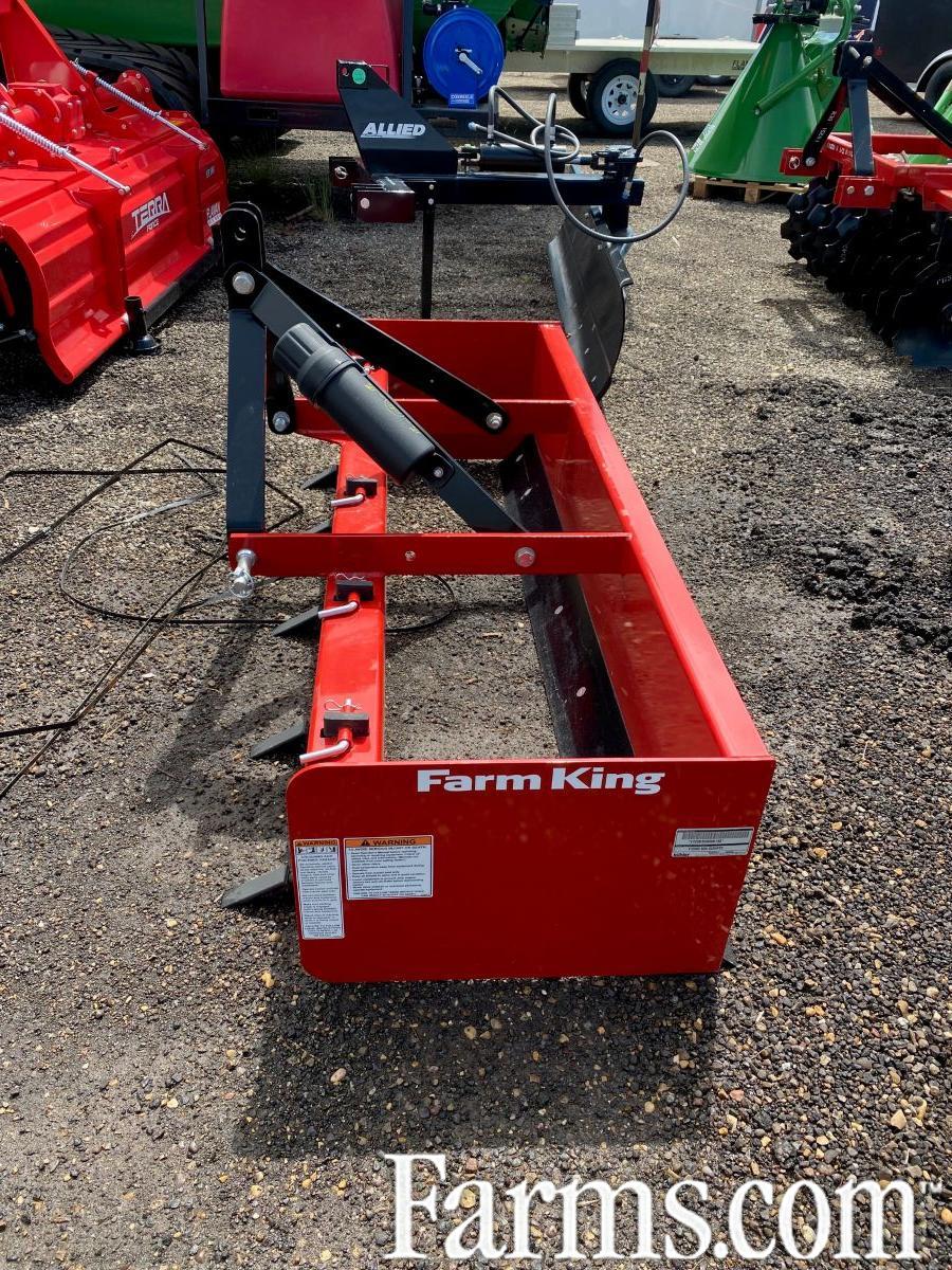 The scarifier shanks are heat treated and are easily adjusted for depth. The Farm King Box Scraper features a replaceable / reversible back to back cutting edge as well as replaceable / reversible scarifier shanks for forward and reverse use.