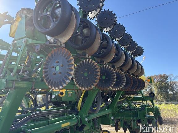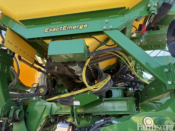 Fertilizer: Other, Frame: Flex Fold, Hopper: Central Fill System, Metering System: Exact Emerge, Options: Electric Drive, Row Command: Yes, Row Spacing: 20 in, Rows: 24, Specifications: English and Spanish; ExactEmerge Package; Connect Mobile Ready; Tractor Attaching Components for 8R and 8RT Series Row-Crop Tractors; Central Commodity System; Liquid Fertilizer and Frame Mounted Single Disk Fertilizer Openers; Two Point Hitch; Electric Drive with Tractor Power Generation - 8030 and 8R Series Tractors; Electric Drive ExactEmerge Meter; Tru-Vee Openers with Single Walking Spoked Gauge Wheels; Heavy Duty Scrapers; Active Pneumatic Down Force System; Rubber Tire Closing Wheels; SeedStar 4 HP Monitor System for ExactEmerge with Settings Manager, Mobile Row Unit Runoff and Easy Fold; BrushBelt Delivery System for High Performance Meter; Unit Mounted Coulter with 0.63 In. 25 Fluted Blades; Tri-Fold Markers with 16 In. Notched Disk, Depth Gauging Band and Control Independent of Planter Lift; Regular Parallel Arms; Liquid Fertilizer Tank and Mounting Brackets; Tire Scraper for Four Main Frame Wheels;