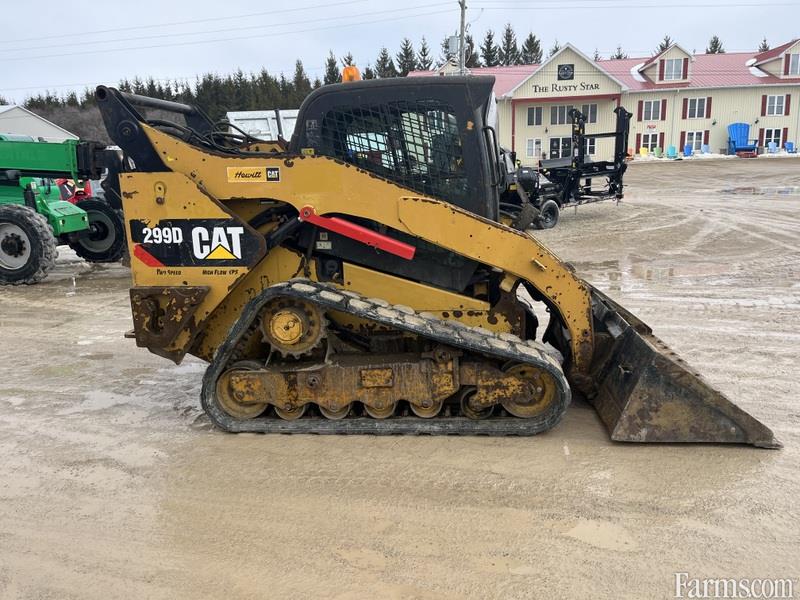 2012 Cat 299D skid steer powered by a 98hp diesel engine. Operating weight of 10700lbs. Enclosed cab with heat. Electrical quick connect on bucket. Equipped with 2 speed and high flow auxiliary hydraulic. Hour meter shows 1644. Located in Maxwell, Ontario.