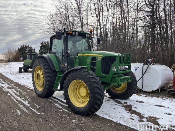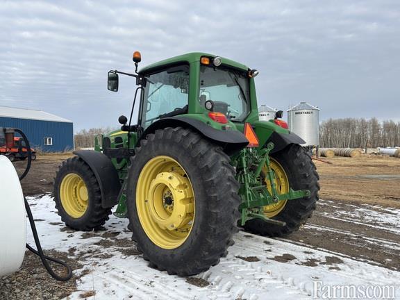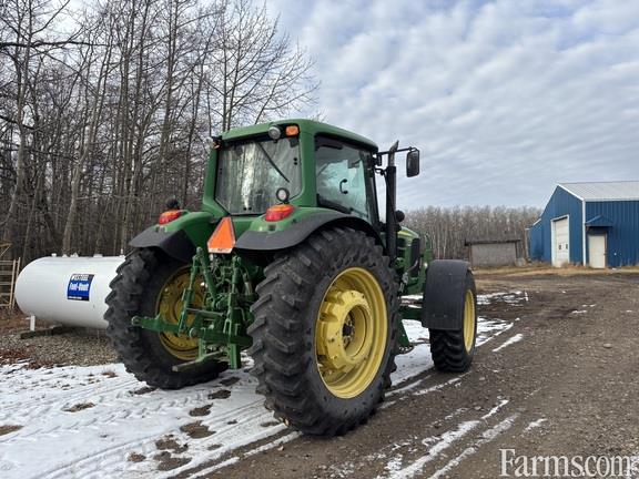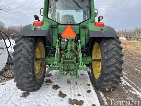 Cab, MFWD, IVT, Guidance-ready: Yes, Rear PTO: 540/1000, Singles, Tire Width: Mid, Loader: Yes, Loader Ready, Mechanical Front Wheel Drive Axle with Limited Slip Differential, GreenStar AutoTrac Ready Wiring Harness and Components with Plug and Play, 5100 Lb. Capacity 3-Point Hitch (Category 2) with Telescopic Draft Links and Sway Blocks, Rack and Pinion 3.385 In. (86mm) Diameter by 96 In. Length, 480/80R42 In. 151A8 R1 Radial (18.4R42 In. 151A8 R1 Radial), No Duals, 380/85R30 In. 135A8 R1 Radial (14.9R30 In. 135A8 R1 Radial), Infinitely Variable Transmission (25 mph/40 kmh), 3-Speed 540/540E/1000 Rear Reversible PTO with Power Assisted PTO Shifting, Three Deluxe (3 Detent - 300 Series) E/H Selective Control Valves with ISO Breakaway Couplers, Underhood Muffler with Deluxe Corner Post Exhaust, Air-Suspended ComfortCommand Seat, Front Fenders for MFWD (Rigid) 18.9-In. (480mm) Coverage Width (2), Three Function Electrical Independent Control Valve Loader Preparation Package, Auxiliary Heater Package, Deere/Delco AM/FM Stereo Radio with Weather band, Two Speakers, Clock and Antenna, One Pair 75 kg (165 Lb.) and One Pair 205 kg (450 Lb.), Quik-Tatch Weight Support Less Weights, Firestone Brand Only