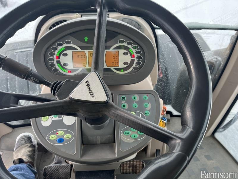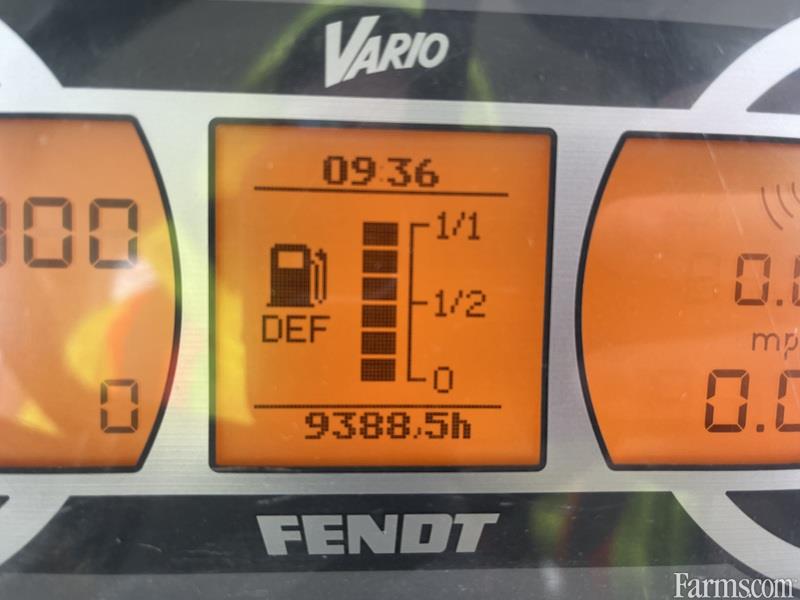 2012 Fendt 930 Vario tractor powered by 296hp diesel engine. Enclosed cab with all glass intact. Equipped with front 3 point hitch and 2 sets for remotes. Rear equipped with 6 sets of rear remotes and case drain and trailer brakes. Front and rear Michelin tires. Hour meter rears 9388. Located in Maxwell Ontario.
