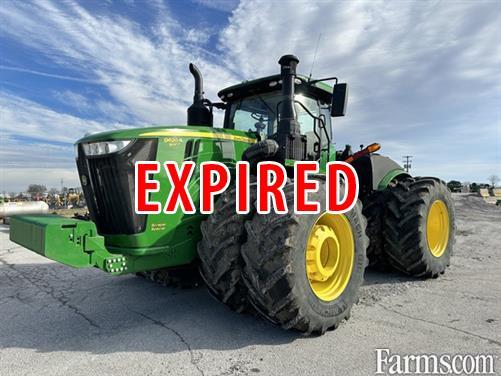 JOHN DEERE 9620R ARTICULATED 4 WHEEL DRIVE SCRAPER SPECIAL TRACTOR, 2021, 620 hp, Cummins, 14.9 liter, 6 cylinder turbo diesel engine, engine brake system, JDLink MTG, 18F/6R full powershift transmission with efficiency manager and right hand bump to shift controls, Premium CommandView III cab, HVAC, premium comfort package, FOPS roof structure, Active ComfortCommand cloth air seat, premium AM/FM radio, cloth buddy seat, auto temp control, electric adjust mirrors, foot decelerator, Gen 4 (10") command arm mounted display, 4600 processor, AutoTrac ready PLUG & PLAY (DOES "NOT" INCLUDED ANY AMS POSITION RECEIVER, ACTIVATIONS OR SUBSCRIPTIONS), dual beam radar, ethernet switch, premium LED lighting, rotary beacon light, deluxe cab corner exhaust, 115 GPM hi-flow dual hydraulic pump, four rear remote E/H hydraulic valves with 3/4" ISO outlets and high pressure relief levers, load sensing hydraulic power steering, greaseable steering pins, under body tow cable, NO rear PTO, NO three point hitch, short drawbar support for scraper drawbars with quick tatch scraper drawbar for JD scrapers, front weight support with 36 front weights, 120mm X 120" double reduction axles with HD axle flat hubs, HydraCushion suspension on front axle, differential lock front & rear, 5,780# cast front wheel weights, dual Michelin 710/70R42 R-1W tires front & rear. JD EXTENDED ENGINE/POWERTRAIN WARRANTY UNTIL 9-22-2026 OR 4000 HOURS ($750 deductible).