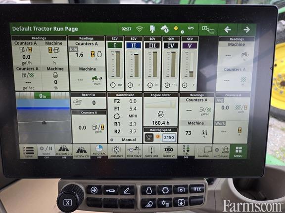 JOHN DEERE 9R 440 ARTICULATED 4 WHEEL DRIVE TRACTOR, 2024, 440 hp, JD 13.6 liter, 6 cylinder, diesel engine, JDLink MTG, 18F/6R e18 powershift transmission with efficiency manager, right hand bump to shift controls, Premium CommandView cab, Premium comfort package, HVAC, auto temp control, Active II cloth air suspension seat, cloth buddy seat, refrigerator, electric adjust mirrors, premium touch set AM/FM radio, business radio ready, load sensing hydraulic power steering,