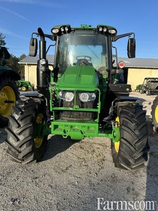 New John Deere 6M 125 cab tractor with 24/24 PowrQuad Plus transmission, 3 SCVs, G5 display with AutoTrac, cab suspension, and premium radio!