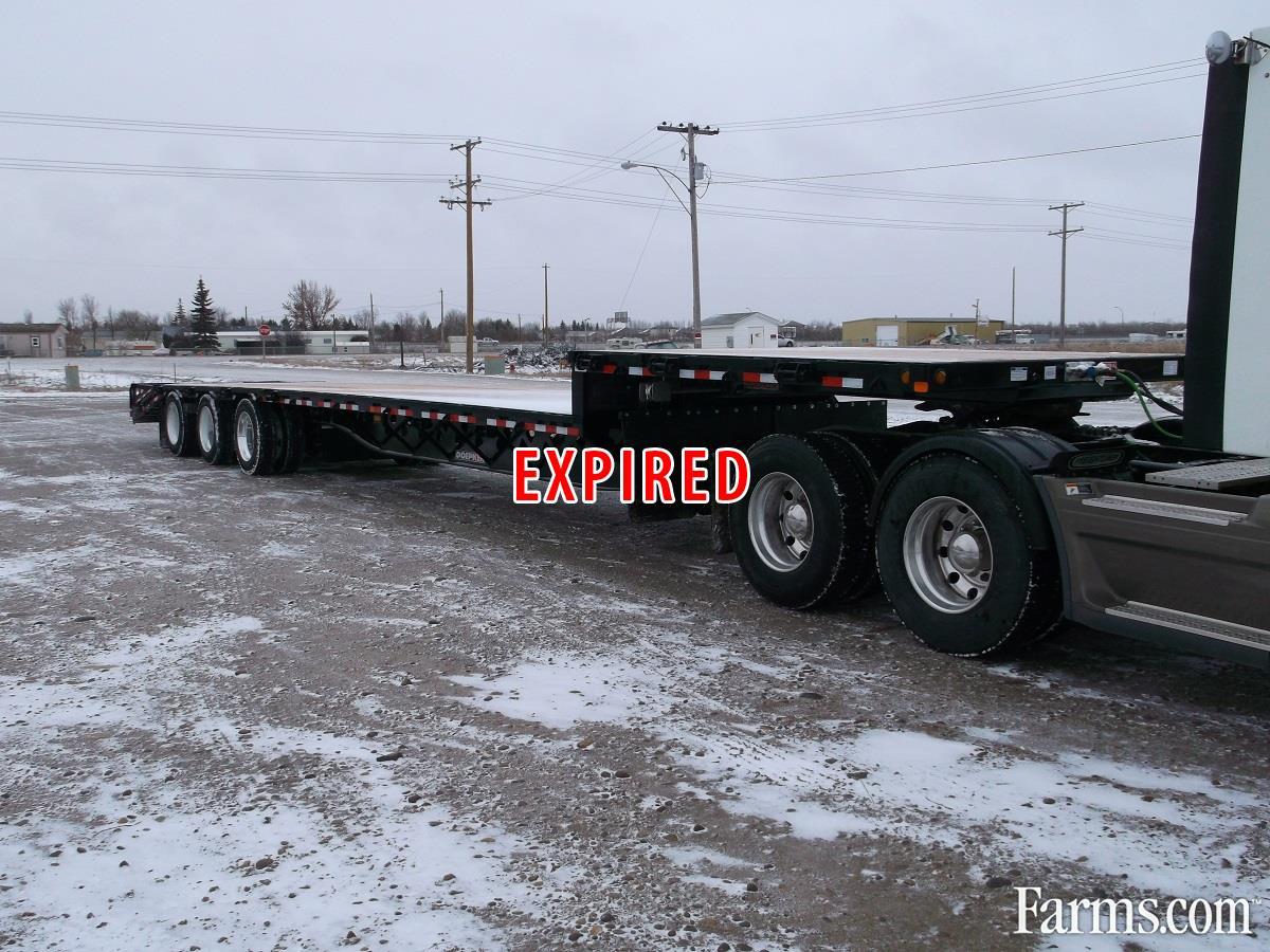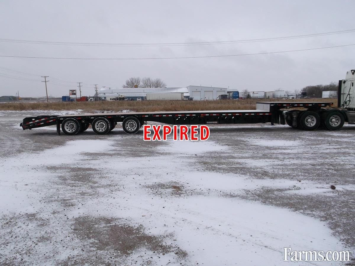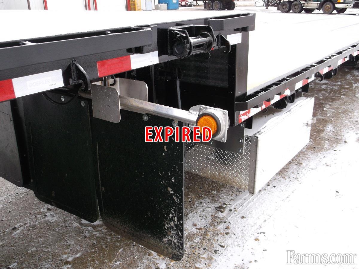 2017 Doepker Tridem Step Deck. 5' Fixed Beavertail and Spring Assist Flip Ramps, 11' Gooseneck, Deck Height: approximately 59" at front and 41" at back, 2" x 6" T&G fir deck boards, 3/8" x 3" heavy duty rub rail, Tarp hooks 24" on center, 3 bar winches (includes J hooks on opposite side) staggered (24 winches: 6 upper, 18 lower), Wide load lights (4 pull-out) approx. 8' from front & at back, 2 strobe lights @ back in lieu of standard inside brake light c/w switch in air gauge box, Extra 7 wire socket at rear, Stake pockets on 4' centers with DDSV-0 side lighting, Mudflaps in front of brake pots - front axle only, Mudflaps full width at landing gear, 255 70R22.5 - BF Goodrich ST230 tires with aluminum outside rims, Please contact one of our Sales Representatives for additional specifications, availability, and pricing. Visit our website for more Trucks and Trailers. www.warnerindustries.ca * While every reasonable effort is made to ensure the accuracy of this information, we are not responsible for any errors or omissions contained on these pages. Please verify any information in question with a sales representative.