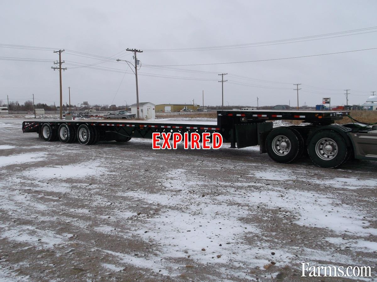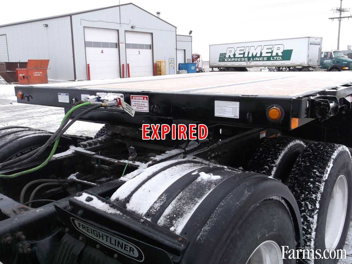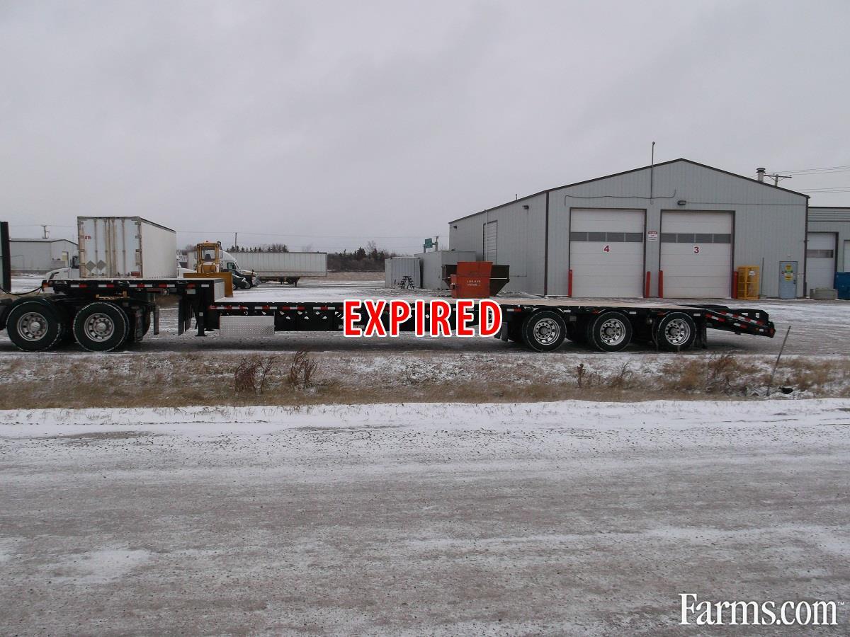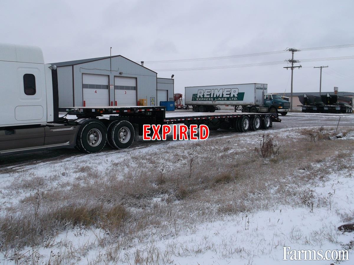 2017 Doepker Tridem Step Deck. 5' Fixed Beavertail and Spring Assist Flip Ramps, 11' Gooseneck, Deck Height: approximately 59" at front and 41" at back, 2" x 6" T&G fir deck boards, 3/8" x 3" heavy duty rub rail, Tarp hooks 24" on center, 3 bar winches (includes J hooks on opposite side) staggered (24 winches: 6 upper, 18 lower), Wide load lights (4 pull-out) approx. 8' from front & at back, 2 strobe lights @ back in lieu of standard inside brake light c/w switch in air gauge box, Extra 7 wire socket at rear, Stake pockets on 4' centers with DDSV-0 side lighting, Mudflaps in front of brake pots - front axle only, Mudflaps full width at landing gear, 255 70R22.5 - BF Goodrich ST230 tires with aluminum outside rims, Please contact one of our Sales Representatives for additional specifications, availability, and pricing. Visit our website for more Trucks and Trailers. www.warnerindustries.ca * While every reasonable effort is made to ensure the accuracy of this information, we are not responsible for any errors or omissions contained on these pages. Please verify any information in question with a sales representative.